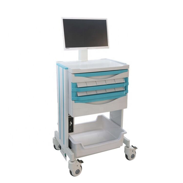 Chariot de poste de travail médical de haute qualité conçu pour les environnements hospitaliers et cliniques, doté d'une hauteur réglable et d'une conception ergonomique pour la commodité du personnel médical et infirmier.