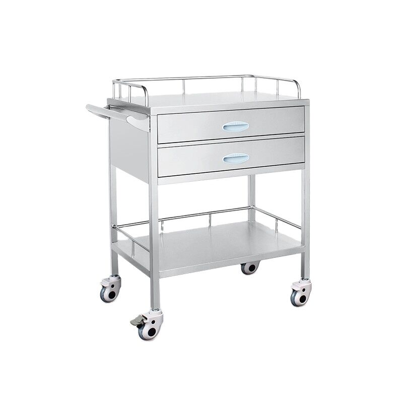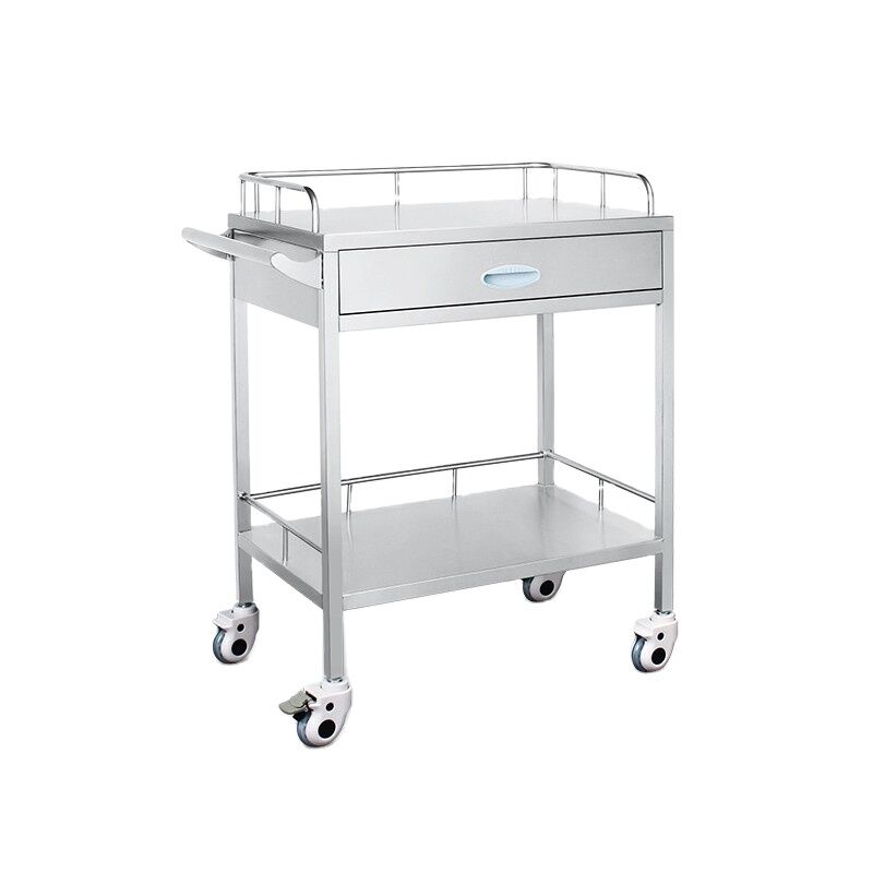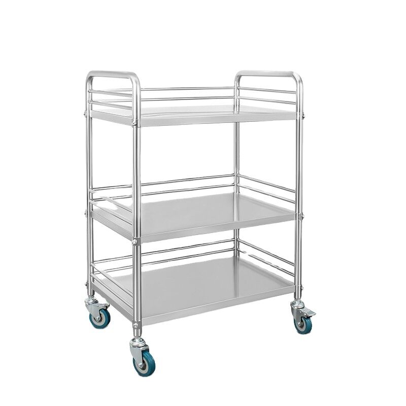 | Les spécifications | Taille du produit: 660*440*890mm Matériau: SS304/SS430 Tirets: 3 pièces Roues: 4 pièces (2 avec frein) Résistance à l'usure Taille de la table supérieure: 63*42,5 cm Plateau de médicaments: 50*35*4,7 cm |
